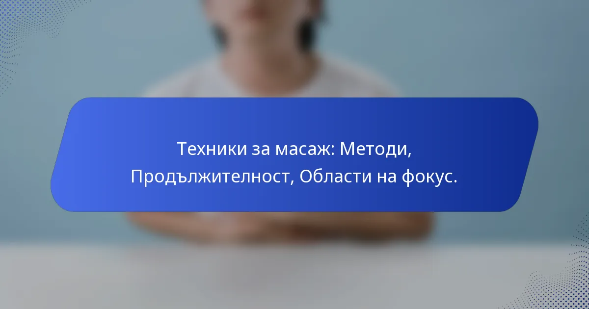 Техниките за масаж предлагат разнообразие от методи, предназначени да облекчат напрежението, да подобрят циркулацията и да насърчат релаксацията. Сесиите обикновено продължават между 30 и 90 минути, като продължителността и конкретните области на фокус могат значително да повлияят на ефективността на лечението, позволявайки персонализирани преживявания, които отговарят на индивидуалните нужди. Key sections in the article: Toggle…